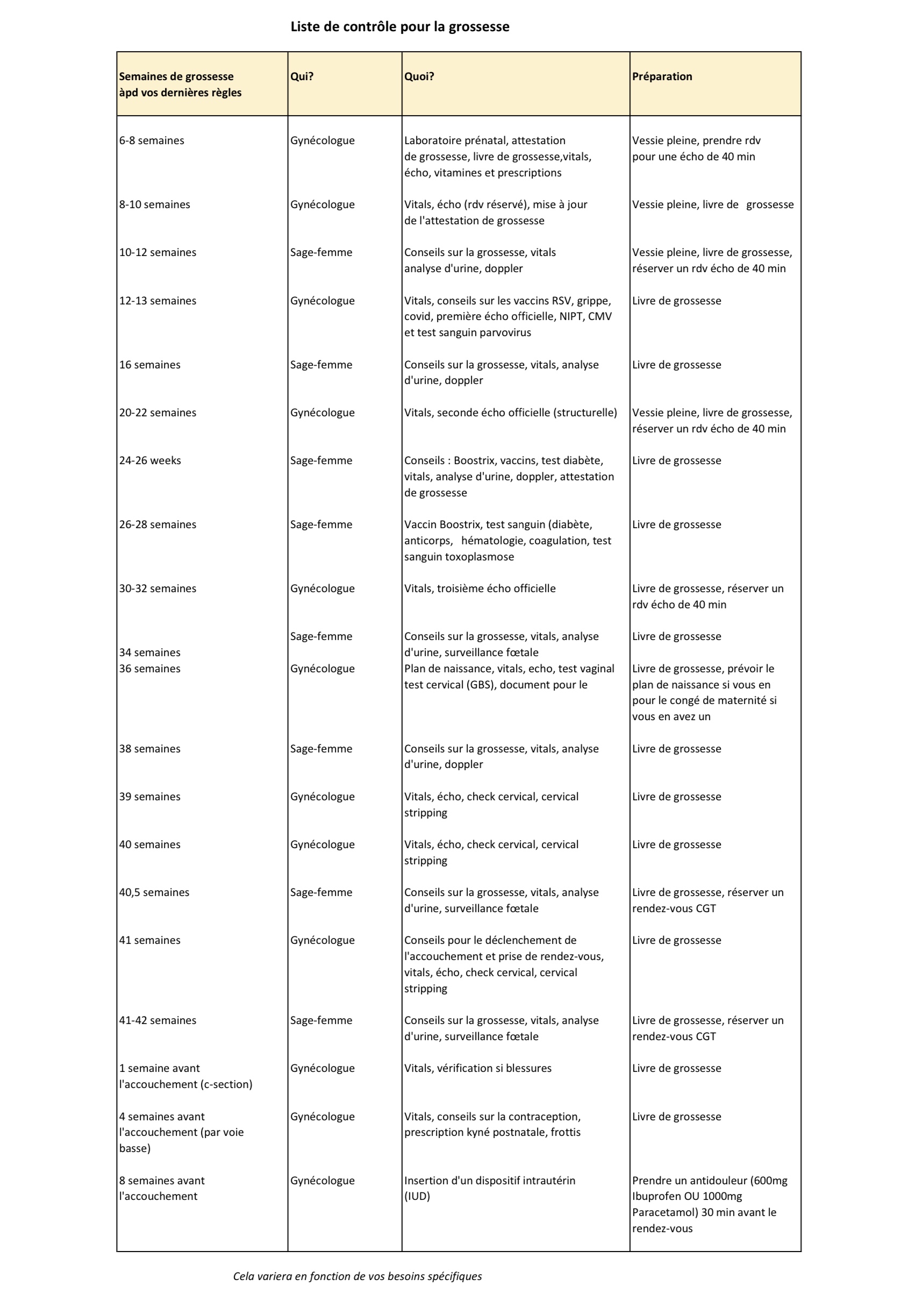 Liste de contrôle pour le traitement de la fertilité